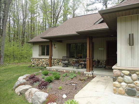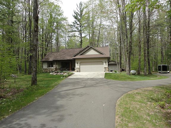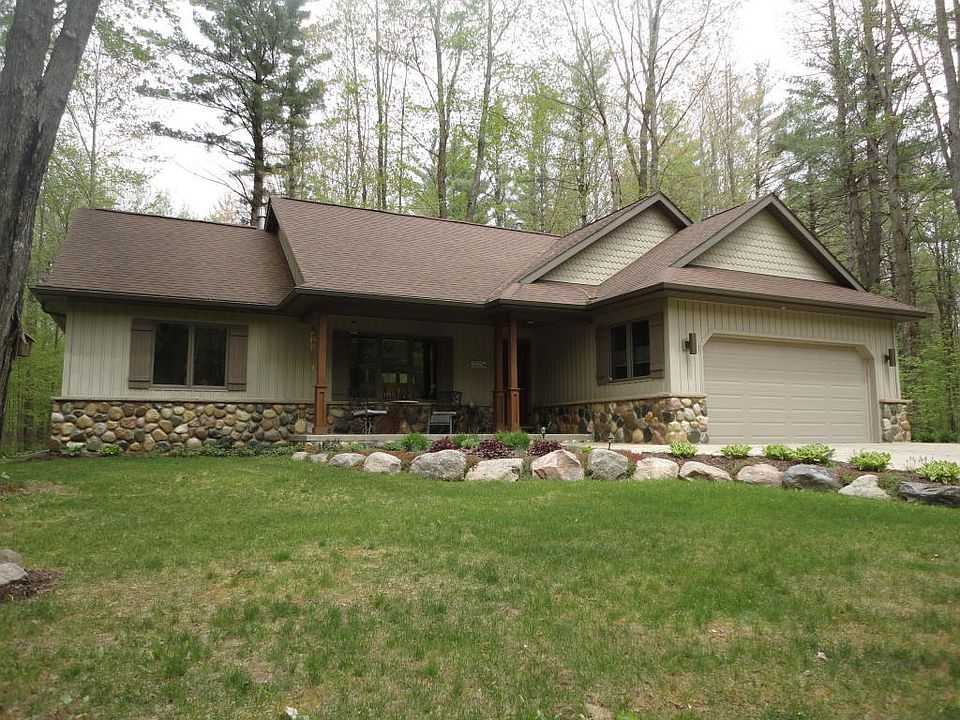 Don't let this be the one that got away! Builder's home with meticulous attention to detail inside and out. Nestled into the woods on a quiet street, this beautiful home boasts hardwood floors, tile showers, stainless appliances, vaulted ceilings Air Conditioning, and spacious floor plan for living! With the added bonus of the second garage and surrounded by 5 lots to give the owner privacy and beauty year round, this property has it all. The home and property have been extremely well cared for, and the mature landscaping make this a move in ready home for year round or seasonal enjoyment. Shown by appointment only, call today for more more details and to arrange your private tour!