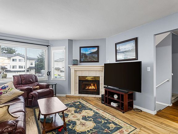 Centrally located in a family-friendly complex, just steps to an elementary school, and sardis secondary, parks, and shopping. The main floor features a spacious living room with gas fireplace, a large kitchen with stainless steel appliances, ample cabinetry and counter space, and a bright eat-in area with newer vinyl flooring. Sliding doors open to a south-facing balcony overlooking green space. A 2-piece bathroom and laundry complete this level.Upstairs offers three well-sized bedrooms, including the primary with walk-in closet and 2-piece ensuite. The main bathroom includes accessibility features and an oversized storage closet. Additional highlights include central A/C, new hot water tank, single garage, and ample storage! Priced to sell