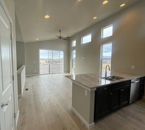 Ready in January. The 220B is a 2-story urban style home with 2 car garage in Midtown Collection at Pathways. 2 bedroom, 2 bath home. Kitchen features 42" cabinets with crown molding, Champagne White granite countertops, pantry, and stainless steel appliances including gas range and refrigerator. Bright living room has sliding glass doors leading to front deck. Master bedroom is conveniently located behind the kitchen. The master bathroom features a mud set tile shower with seat and frameless shower glass, double sinks and walk-in closet. Lower level bedroom and bath has privacy from the rest of the home. Additional features in the home include air conditioning and smart home package. Interior color selections of the Chic-1 Design Pak brings fashion and style to any home design. The color palette showcases rich charcoal, granite, quartz and a blend of warm beige and white tiles accentuated by chrome and black fixtures and hardware. Landscaping included.