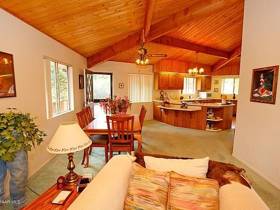 A truly unique home located high in the hills of Highland Pines. An excellent extended family home with driveways to the main and lower levels. The main level offers a master suite plus a second bedroom and bathroom. The lower level has provides a great space for guests and storage. An observation room is located above the main level with 360 degree of the countryside. Each level has a wonderful view to the north. The large deck off the north side of the home provides a great space to enjoy the views and cool air. The lot next door is also available for sale if more land is desired. Prescott National Forest open space is located across the street.