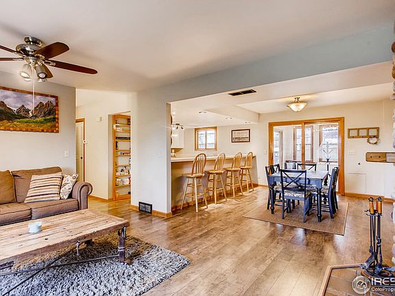 Colorado living in Mill Canyon Estates on a lg .38 ac lot. Open floor plan, warm & cozy living room w wood fp & new laminate flooring! Lg kitchen w/breakfast bar, great for entertaining! 3-season sunroom opens to maturely landscaped yard w/flagstone patio, brand new sprinkler system & hot tub! Upper level incl a lg loft/family room w/incredible foothills views. Mstr bedroom w/ attached ba & walk-in closet. Attached 560 SF oversized 2-Car gar. Minutes to Horsetooth Reservoir & Lory State Park.