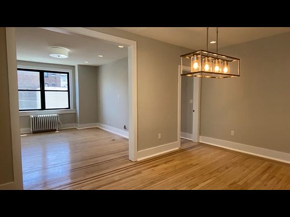 Modern two bedroom, one bathroom apartment with a formal dining room. Beautiful natural hardwood floors, lots of natural light, and black stainless steel appliances. Blocks away from Blvd East. Indoor parking space available for an additional fee. No realtor fee. Month and a half security. First months rent. Owner is Lic. by REC.