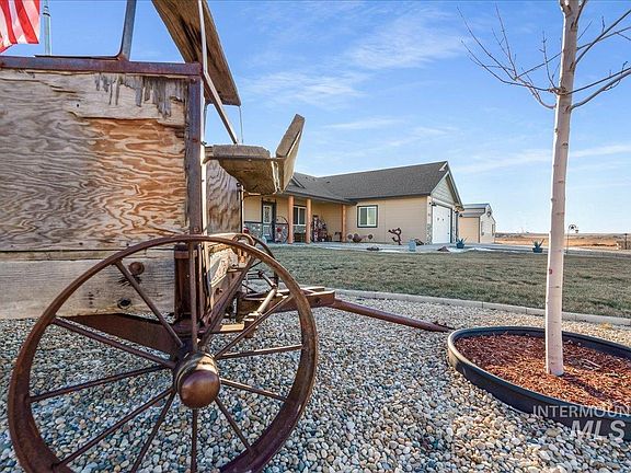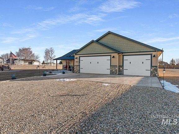 This immaculate, custom-built single-story home offers sunset views and sits on 2.8 acres and has 3 acre water rights. The split bedroom floor plan with open living space offers 2040 sq. ft., including 3 bedrooms, 2 bathrooms, and an attached 3-car garage with 2) 220 outlets and room to work. Built in 2021, the home boasts many upgrades and is like new. Enjoy the many outdoor features including a new 30X42 metal barn, firepit, horseshoe pits, cornhole slabs, remote outdoor lighting and a solar lighted flagpole all located in the desirable New Plymouth, Idaho school district. Quiet country living yet sitting just 37 miles from the I-84 Eagle Rd exit in Boise. Pride of ownership is evident throughout this well-maintained property. A features list is available upon request to fully appreciate all this home has to offer.