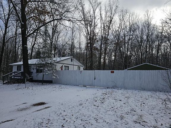 Large price reduction. 2 bedroom ranch style home in a beautiful, peaceful setting in the woods with nature all around. Home has open concept and feels roomy. The lot is 120x120 with a large, newer privacy fenced back yard, could be perfect for securing your pets. The large 2 car+ garage has water & electric and has been insulated. Many updates done in 2023: all new plumbing, attic insulation, front deck, exterior & interior paint. House is on an easy access crawl space and has a 100' private well. Stainless fridge, stove and micro included. The Ring security video/alarm system, large screen TV and other household items could be included also. Nice location just 5 miles to Whittemore and 15 minutes to Tawas for shopping and many lake and beach activities.
