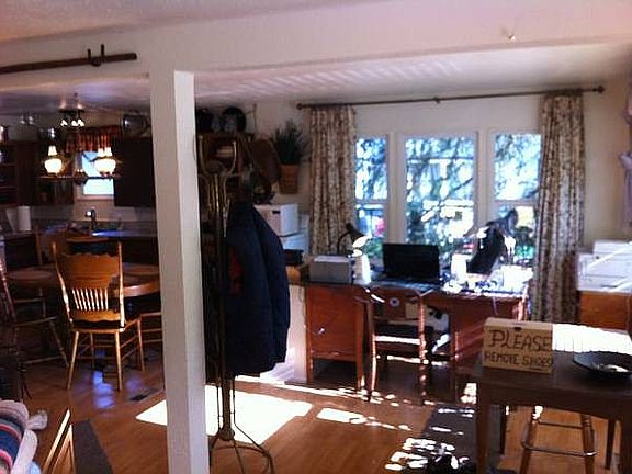 Enjoy the morning and afternoon sunshine streaming into this homey 1973 mobile home. Feel warm & secure with extra insulated, furred-out walls plus textured sheet rock finish. With large vinyl clad windows throughout, especially in the living and dining areas, it feels like a stick built home. Spacious front room is perfect for entertaining. Plenty of room for the addition of a desk/office area. Solid wood kitchen cabinets. Covered rear entrance. Laminate floors and wall to wall carpeting throughout. Convenient 3+ car off-street parking right at your front door. Quiet neighbors. Move-in ready. Furnishings in all rooms go with the sale of the home including a washer and dryer, refrigerator and stove. Out of town owner will be opening the home to an open house this Saturday, 9/25, 1PM to 3PM. Call Lee at 209-2674 for more details. Discounted price for an all cash buyer.