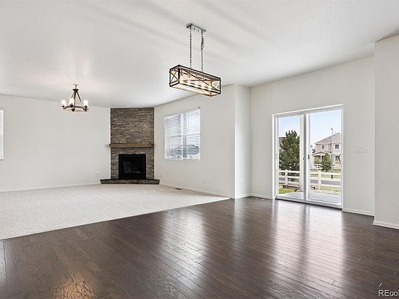 The kitchen features rich chocolate maple cabinetry, matching hardwood flooring, a massive walk-in pantry, and a convenient mudroom just off the garage—perfect for busy households. Upstairs, the spacious Primary Suite offers a large walk-in closet and a peaceful retreat. Three additional generously sized bedrooms and an upstairs laundry room provide ideal functionality for families or guests. The full basement is a blank canvas—ready for you to create your dream space, whether it's a home theater, gym, or additional living area. The garage has hot and cold water connections, and a compressor line from the garage to the basement where a compressor can be installed. Enjoy privacy in the expansive backyard, which does not back up to another home—offering both space and serenity. Location Highlights: 5 minutes to grocery shopping, close to scenic walking trails, parks, and playgrounds, located in the highly rated Douglas County School District, future Costco and LifeTime Fitness planned at Plum Creek & I-25, part of a welcoming community with recreation amenities and great schools. Don’t miss the opportunity to make this beautiful home your own—schedule a showing today!