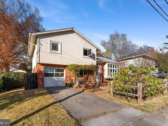 Stunning, architecturally distinct split-level home in the sought-after Bradmoor subdivision, offering over 2,100 sq ft of finished living space. The light-filled main level features a dramatic wall of windows, refinished hardwood floors (2018), custom built-ins, and a wood-burning stove. The chef’s kitchen features high-end appliances, ample counter space, open shelving, a breakfast bar, a microwave/convection oven and warming drawer, and access to a large rear deck—perfect for entertaining. The upper level includes a serene primary suite with treetop views and a renovated ensuite bath (2018) with heated floors, plus two additional bedrooms and a renovated full bath (2018). A flexible second living area with a renovated ensuite bath (2018) can easily serve as a fourth bedroom. The lower level offers a rec room, den/office, and laundry/storage. Outdoor features include a fenced backyard, covered terrace, storage sheds, and a one-car garage. A new roof is scheduled to be installed in approximately two weeks. Conveniently located near Downtown Bethesda, parks, shopping, dining, and major commuter routes, and zoned for Bradley Hills ES, Thomas Pyle MS, and Walt Whitman HS.