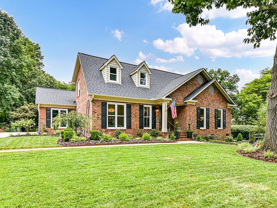 Discover this stunning all-brick home on a private 1/2 acre homesite in Carriage Downs. The open floor plan features a new kitchen with quartz countertops, a waterfall island, custom cabinetry, a custom pantry, and a mud/laundry room. Enjoy cozy evenings by the gas logs and new windows and doors. The main-floor primary suite offers luxury living with an updated bath featuring a low entry walk-in shower and a floating tub. Step outside to a fenced-in backyard with a smart irrigation system on a well, controlled by your phone, keeping your grass, fruit trees, and garden lush. With two garages, you have versatile space options for an office, home gym, workshop, or hobby garage. Quick access to I-85 & 485 allows you to reach Charlotte swiftly. This home’s location places you close to shopping (less than 1 mile to Harris Teeter & Publix), restaurants, grocery stores, and parks, offering the perfect blend of convenience and comfort.