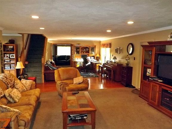 This approximately 4000 sq ft house was completely remodeled and added onto in 2004. You walk in to a nice entry way with hardwood floors which leads into a living room area with bamboo floors and a faux fire place which can be turned into working fireplace which then leads into a very large family room complete with wood burning stove. Kitchen area has a sitting room and also a dining area with doors leading out to a large deck. Downstairs also features 2 extra rooms which could be office space and a bedroom. Upstairs features 4 large bedrooms, all with walk-in closets, and a huge bathroom complete with toilet stall, built in whirlpool tub and stand up shower. Master bedroom has his & her closets. Outside features almost 4 acres of privacy with a wrap around driveway, large deck and little courtyard area in the front. Also includes a 24 x 48 foot detached garage/outbuilding with 2 garage bays and office space with a wood burning stove. Office space could be converted to another garage bay. Includes roughed in bathroom in office area. Other features include a new septic in 2010 and an attached 2 bay garage from the main house. Close to all major roads, WHP & AC Expressway.