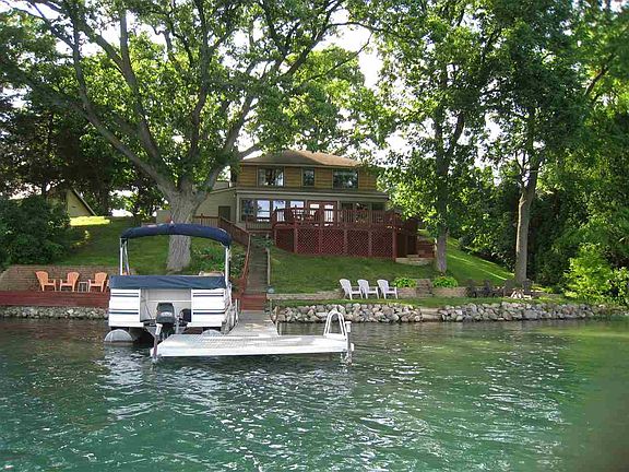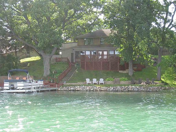 Beautiful lake front home offering 96+ feet of frontage and a firm swim beach on South Twin Lake. This double lot with mature shade trees gives a private setting with outstanding lake views. South Twin is connected to North Twin Lake and both are considered two of Indiana's cleanest spring-fed lakes with crystal blue water. No flooding issues. Good fishing including pan fish and bass. (Former State record small mouth bass caught on Twin Lakes.) Neighborhood is comprised of well-kept lake front homes. Remodeled in 2007 this home features an open floor plan with custom-made Alder kitchen cabinetry, large granite top island, and custom-built-in entertainment center. A spacious enclosed porch adjoins the living space and opens to a lake view deck ideal for relaxing or entertaining. Artfully landscaped with perennials and multiple deck areas, including a grill deck with sitting area, lower water front deck, lakeside seating and campfire area, all provide enjoyment for lake life. The upper level of the home offers 3 bedrooms, two with stunning lake views, a full bath, vanity area and walk-in closet. An exterior side-room for water-toys and a second refrigerator, plus shed, attached garage and two pull-down attic storage areas provide plenty of storage space. Updates include New carpeting in May 2015. Well and water heater new in 2007. New decking added and all decking stained June 2015. Newer natural stone seawall. Landscaping block project currently underway will be completed by seller.