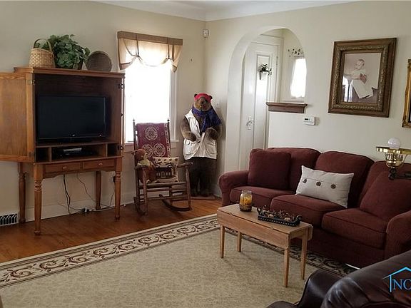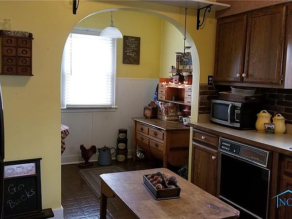 Nicely maintained home that has a lot of charm. Starting with the large front porch which is inviting to all. Updates include windows, vinyl siding, garage, some newer plumbing, newer concrete driveway. Roof was a complete tear off. All appliances remain. Hardwood floors. Bay window in dining room. Deck in back yard.