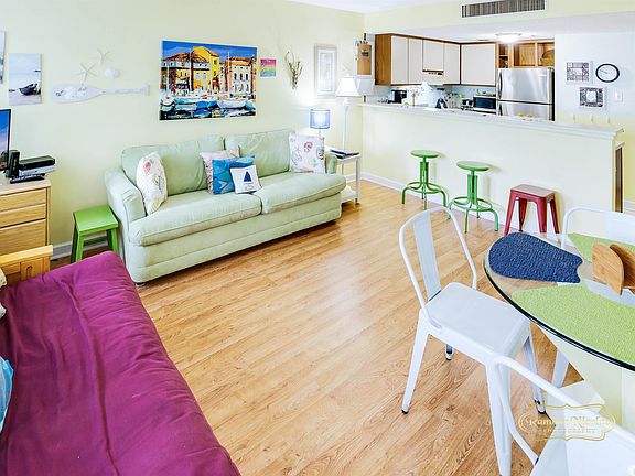 This 1-bedroom/1-bath condo in the Five Seasons section of popular Myrtle Beach Resort offers both tranquility and convenience with its location in a beautiful courtyard that is only steps from all the Resort has to offer and the Big, Blue Atlantic. Inside,this home has been impeccably maintained and upgraded laminate flooring in the living room and bedroom as well as newer furniture.Enjoy the view of the putting green, hot tub, and pool in tree covered serenity from your balcony with the morning coffee or the eveninglibation. Now it's time to enjoy your stay whether it be for a long weekend, an extended stay, or as your primary residence. MyrtleBeach Resort is a 33-acre gated oceanfront community with many amenities including six pools with two indoors, a lazy river, hot tubs,saunas, tennis courts, fitness rooms, bocce court, game room, 24-hour security, and activities for all ages from playgrounds to abeachfront bar & grill. Conveniently located on Highway 17 just north of SR 544, Myrtle Beach Resort is convenient to all the area has to offer. Square footage is approximate and not guaranteed. Buyer responsible for verification.