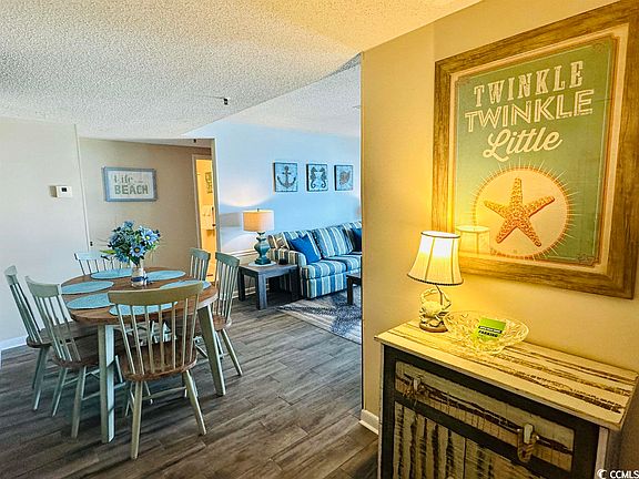 Enjoy ocean views from the primary bedroom or living room area in this beautiful 2 bedroom/2 bath condo! As you step in the foyer you will love the wood look tile throughout the main living areas. Property comes fully furnished including the newly wall-mounted 42" TVs in the living room and primary bedroom. The condo has new bathroom vanities plus freshly white-washed beach style kitchen cabinets and fresh paint. You will love listening to the sound of the ocean from the 22' balcony! Myrtle Beach Resort is a gated 33 acre oceanfront resort with 24/7 security and guard gate. The resort features an oceanfront pool plus additional outdoor pools, two indoor pools, lazy river, tennis, playground, grilling picnic area, oceanfront bar & restaurant, basketball court, volleyball, hot tubs plus two fitness facilities. This resort is in a fantastic location that is only 5 miles to the Myrtle Beach International Airport. Enjoy the many nearby delicious restaurants and also visit Market Common shopping and dining area, quaint Surfside Beach area or enjoy a stroll along the Marshwalk in Murrells Inlet or take a fishing tour! Contact your agent to schedule a tour!