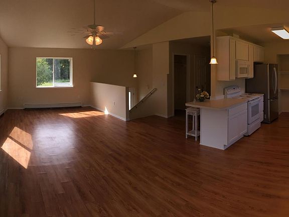 Bring your farm animals, recreational toys or heavy equipment!! Completely new down to the studs-3 bedrooms, 2 bath Split Level on 2.38 acres with unobstructed Chugach Mountain Range views! Open floor plan with Vaulted ceiling, new kitchen, new bathrooms, new flooring,new sheet rock throughout, new paint, new roof, new deck,and more. Gas at road if you want to convert! lots of room for Dream Shop!