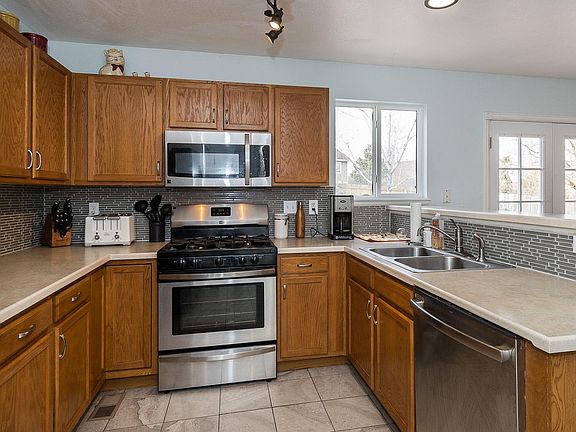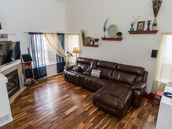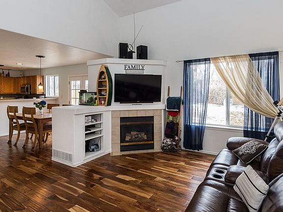 Beautifully upgraded home in highly sought after Saddle Rock Ridge. Gorgeous Boca Raton hardwood floors throughout living room and dining room. Open kitchen with stainless steel appliances (gas stove), tiled floors, upgraded outlets with usb plug, custom pull out spice rack, and glass tile back-splash. Large dining area with french doors and spacious pantry. Light & bright living room with soaring ceilings and cozy gas fireplace. Master suite with walk-in closet. Secondary bedrooms are spacious, one w/ herring bone pattern hardwoods. Upstairs bath features tiled floors & dual sinks. Beautifully landscaped back yard with large flagstone patio and retaining wall, raised garden beds, and firepit. New exterior & interior paint 2016/2017. New water heater 2014. New roof 2014. Whole house humidifier. KVAR electric system. Dont miss out on this perfect home