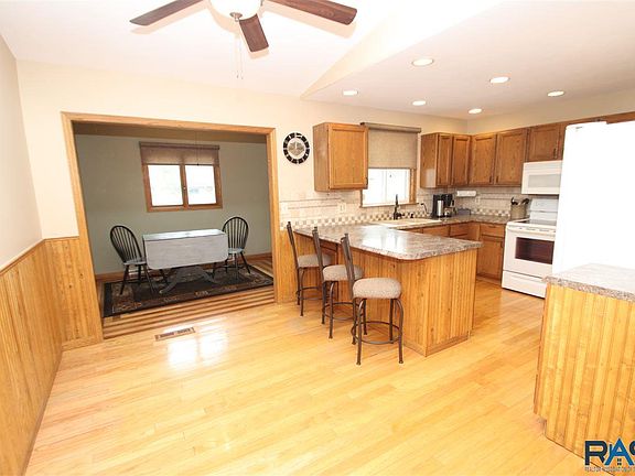 Open house CANCELLED! Outstanding home in excellent condition with an easy walk to school, Kuehn Park and year-round outdoor sports! This is one of the best homes you'll ever see in this price range and in Oscar Howe elementary school district. 4 bedrooms, 2 full baths, and nearly 2000 square feet finished. Gracious foyer with heated tile floor, hardwood floor and newer carpets, updated baths with tile floors/surround. Large kitchen with peninsula, comfortable eating area plus a 4 season room. 2 beautiful gas fireplaces. Spacious bedrooms with organized closets. Multiple decks with permanent flooring and rails, vinyl fenced backyard, sprinkler system, and a 14x14 lighted shed. Oversized heated 2 car garage with epoxy floor. Many improvements and upgrades. All major appliances, surround sound, security system, water softener, and a whole lot more is included. New siding, shingles, and mechanicals. Quick drive to schools, shopping, dining, and entertainment.