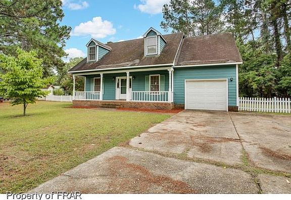 This home is located in the Jack Britt School District! Cute as a button cape cod style home that's located on a cul-de-sac with one of the largest fenced in lots. Featuring three bedroom, two and a half baths with a bonus room and a TON of extra storage! Great room has a beautiful brick fireplace and wood pergo type floors. Kitchen has all the appliances, large eat in breakfast area plus a formal dining room. Separate laundry room with a washer/dryer as gifts. Relax on your covered front porch!