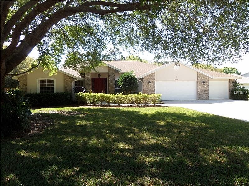 Lots of love has been showered onto this lovely Braden Woods beauty. The original owners have continued making improvements over the years that they have loved their home. Upgrades to numerous to list. This 3 bedroom + den, 3 bath, 2502 sq ft home with a 3-car garage has a gorgeous & updated kitchen. Solid cherry wood cabinets complimented by ebony granite counter tops with a fleck which is stunning. Other features of the kitchen include - new appliances, lots of storage drawers with soft close, a buffet area, custom lighting & large ceramic tile flooring. Overall this kitchen is a cooks delight and along with the family room, breakfast area form the gathering center for the home. Master bedroom, living room, kitchen, family room and pool bath open to the caged pool & covered area. Formal dining room with built-in cabinets and living room with wood-tone flooring. Many memories have been created here with family and friends. The bedrooms are split plan and are all ample size. The master bedroom is 19'' x 13'' and connects to a great master bath. Dual sinks, soaking tub and separate shower complete this private area-away from the rest of this home. The 2nd bedroom has a beautiful built-in desk between 2 well thought out closets for plenty of storage. The property is 3/4 acre with a privacy fenced backyard featuring a 10'' x 10'' workshop/potting shed. The St Augustine grass is in perfect condition and the landscape is mature with numerous pigmy-date palms and the well cared for yard has a lush tropical feel.