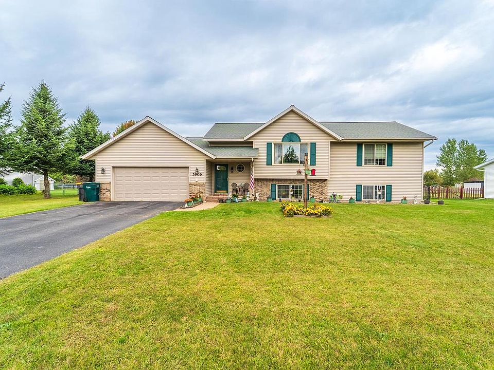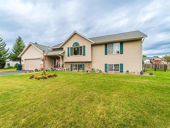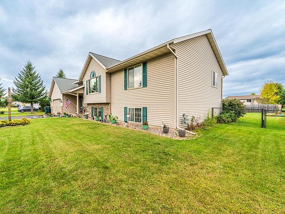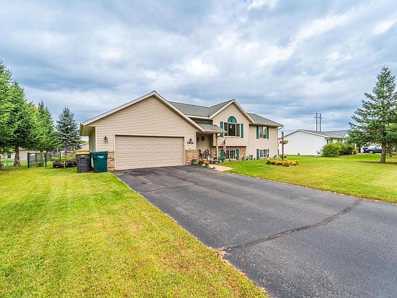 Welcome to this beautifully maintained raised ranch in the highly desirable Sandy Meadow subdivision within the D.C. Everest School District. This 4-bedroom, 2-bathroom home offers an open-concept layout, vaulted ceilings, and bright natural light throughout. The upper level has a complete open concept with vaulted ceilings. The kitchen has real hardwood floors, a large island, pantry, and tons of cabinet and counterspace. Appliances are included! There is a dining area with access to the back deck area, perfect for entertaining. The living room is large and front facing allowing tons of natural light into the space. The primary bedroom is extra large and includes a walk in closet. There is another upper bedroom and full bathroom. The finished lower level provides excellent additional living space, including two more bedrooms, a second full bathroom, and a generous family room with full-sized windows that flood the space with light. You'll also enjoy the cozy gas fireplace, custom built-in bookcase and abundant closet storage. The finished laundry/utility room adds extra functional