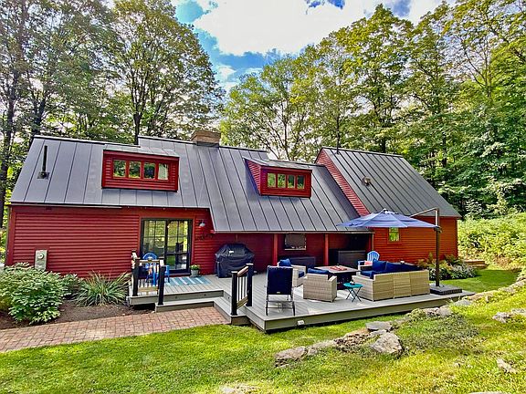 This is the one you've been looking for!! This reproduction cape is sweet as can be. Lovingly maintained and improved this 3 bedroom, 2 full bath home is just right. On the first floor you will find a charming galley kitchen with newer SS appliances, open to the dining area with fireplace. A cozy living room with a massive fireplace will be just the place for those long winter nights ahead. A beautiful primary bedroom with en suite bath was added in 2018, filled with natural light, vaulted ceiling and generous closet. Walk out the french doors to a private deck and small above ground pool. A full guest bath rounds out the first floor. Upstairs you will find 2 more bedrooms, both with built-ins. The basement has been partially finished and provides a fantastic space for home office, gym, or a movie room. The backyard is an oasis with a stunning large deck that was also added in 2018. Beautiful plantings abound. There is a standing seam metal roof and large 2 car detached garage with tons of storage. 1 mile to the MA border, minutes to grocery shopping, downtown Brattleboro, The Guilford Country Store and the Blueberry House with THE most delicious ice cream around. Showings begin on 09/02 by appointment only.