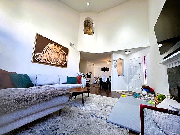 Welcome to the highly desirable gated community 'SONATA'. This Gorgeous light & bright 3 Bedrooms and 2.5 Baths Townhouse feels as a single family home with its 2 car attached & direct access garage, spacious entertaining patio, and shares only one common wall. Tastefully updated, freshly painted, featuring wood floors throughout, recessed lighting, newer light fixtures, updated kitchen with travertine floor, Cesar stone counter tops, travertine tile backsplash, and newer stainless steel appliances. The unit also features beautiful high vaulted ceilings in living room, and in master bedroom. Living room has a fire place, and large windows bringing in lots of natural light. Master bedroom is spacious with walk-in closet and beautiful and newer en-suite master bath, with dual sinks vanity, and walk in shower. The private patio is spacious and a great place to have a Bar-B-Q. Washer and Dryer hookups are in the garage. Very well maintained, and beautiful community! Enjoy the sparkling pool surrounded by resort style palm trees. Walking distance to parks, restaurants, shops, places of worship, the orange bus line station, and the 101 freeway. Schedule a showing today!