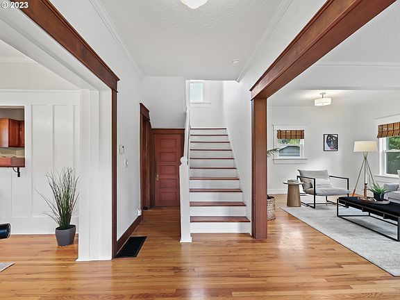 Reviewing offers today. Please call ASAP. Nestled in the heart of the vibrant Vernon neighborhood, this charming bungalow offers a unique blend of comfort and convenience. With a newer roof, newer windows, newer copper pluming, a super efficient electric hybrid heat pump water heater, and extremely low property taxes this is an amazing find for any buyer. The home itself is a cozy retreat, boasting a timeless design that seamlessly integrates with the character of the neighborhood. Once you enter, a warm and inviting interior unfolds. Sunlight streams through the windows, casting a natural glow on the hardwood floors in the formal living and dining rooms. The kitchen features custom concrete and butcher block counters, gas cooking, filtered water, and an eating bar great for conversation while making meals. A spacious full bath with tub/shower, rounds out the main level. Upstairs are three bedrooms, all with wood floors, one with a wooden built-in. The full unfinished basement is freshly painted, clean, dry, usable space, with an exterior entrance that could allow for a future ADU. Relax or entertain in your private backyard, complete with raised garden beds, fruit-bearing trees, and a firepit. With a bike score of 96 and a walk score of 80, the home is convenient to Alberta Park and restaurants. Alberta Street is only a short walk away. This is a true biker and pedestrian haven. [Home Energy Score = 1. HES Report at https://rpt.greenbuildingregistry.com/hes/OR10222900]