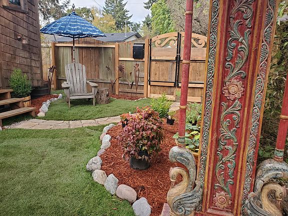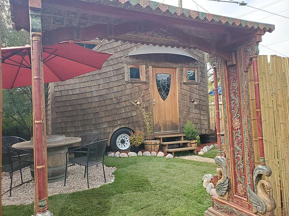 Enjoy tiny house living in this beautiful, one-of-a-kind tiny house called Pacifica. Pacifica was built in Olympia, Washington by nationally known tiny house builder, Abel Zyl, of Zyl Vardos. Originally custom built for Caravan- The Tiny House Hotel, the world's first tiny house hotel in the Alberta Arts District in Portland, Pacifica has been revamped for weekly and monthly stays at my sweet property in the Cully neighborhood in NE PDX. My name is Deb and I am the owner of Caravan and am so excited to share this gem with people looking for weekly and monthly stays. Pacifica is truly a work of art! Filled with light that streams through the custom-made stained glass; beautiful handmade art from around the world; Talavera sink and dishes brought back from Mexico for Pacifica; a Talavera tile counter made by the owner; a spacious loft with a memory-foam mattress, luxurious sheets, fuzzy blanket, and a gorgeous specially-designed quilt; a cobalt-blue velvet couch; and a closet, bureau, and shelves that will provide plenty of space for your belongings. Pacifica is 160sq ft and has hot running water, electric heat, a kitchen, flush toilet, and a hot shower. Pacifica is stocked with many amenities for a comfortable and cozy stay, including linens, cookware, an Italian coffee maker, a microwave, double stove-top burner, and a small refrigerator. I'm happy to support our creative and talented Portland community by purchasing locally sourced, sustainable, Fair Trade and eco-friendly products wherever possible. The yard for Pacifica has been completely renovated with cozy places to sit, a custom-made wine barrel table, a gorgeous antique Indonesian gate, Adirondack chair, covered bike storage, and more. It is totally private with a whimsical fence, and has a separate entrance and free parking spot. I'm thrilled to make this special space available to folks looking for short-term stays! Utilities included and free high speed wi-fi. No cigarette smoking inside the tiny house or on the premises.