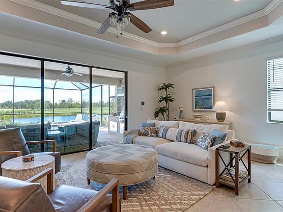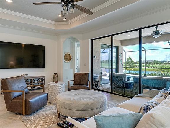 Enjoy the Florida Lifestyle in this stunning Executive Home in the Gated Golf Community of Lakewood National. This home has it all! Plenty of room for the whole family in this 4 bedroom, 2 bathroom home, that lends itself to fun and entertainment with an open floor plan and upgrades galore. Vaulted ceilings, granite counter tops, dual sinks, soaking tub, private pool and spa, gorgeous outdoor kitchen with built in grill. Enjoy the magnificent view of the lake as you enter the front door and watch the golfers navigate the fun and challenging course from your private lanai with pool and spa. This home has coastal contemporary furnishings in a soothing color palate . High season rate is $12,000 per month (Dec.- April). Navigate the new 36 hole Arnold Palmer designed unique and challenging golf courses and driving range. AMENITIES INCLUDE CLUBHOUSE WITH RESTAURANT AND BAR, FITNESS CENTER, RESORT STYLE SWIMMING POOLS WITH OUTDOOR GRILLE AND POOLSIDE SERVICE, A FULL SERVICE SPA FOR MASSAGES AND FACIALS, 8 TENNIS COURTS, PICKLE BALL AND MORE! Golf Membership transfer available for purchase. $75.00 monthly food & beverage minimum required at on-site tiki bar/ Restaurant (alcohol excluded). Easy access to I-75, A+ schools, local shopping and dining, University Parkway, Sarasota Airport and all that Lakewood Ranch has to offer.
