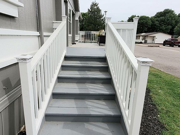 Price Improvement! HUGE oversized doublewide with a garage in an all-ages park! This is truly a rare find! Oversized means this home boasts over 1500 square feet! The easy to access extra deep garage measures 14 x 32 and even has a bonus shop area that's an additional 14 x 10. Home got a new roof in '22, new furnace in '19. First you enter through the laundry room/ mud room. Then you find the immaculate kitchen that faces south and bathes in natural light. Trendy, painted cabinets, tile counter tops, a desk area, island, pantry, and upgraded 5 burner gas range with stainless steel hood. All the other appliances are included as well (including the washer and dryer!) Spacious living room can almost certainly accommodate nearly any furniture arrangement. The primary bedroom has an expansive walk-in closet and luxurious 5 piece on-suite bathroom, complete with double sinks, a walk in shower and separate tub. Two additional bedrooms at the opposite end of the home offers plenty of space for the family. Outside there is plenty of space for entertaining family and friends on your gorgeous south facing porch, on the side patio, or under your cozy gazebo! Partially fenced yard could be added to, to fully enclose an area for kids or pets, if needed. Perfect Location near shopping, restaurants, and other businesses, so everything is close by! Come see this fantastic, rare find today!