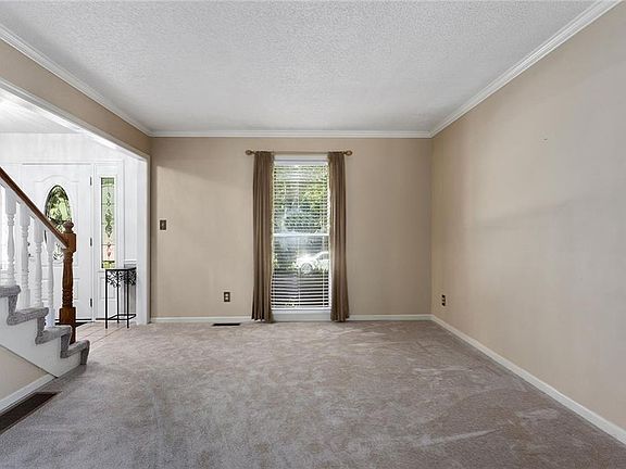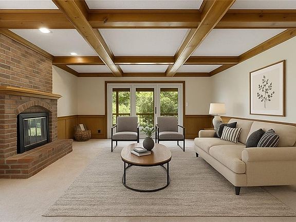Professional photos availlable 7-4-2025 but don't wait to see this fabulous home with updates throughout. One of the most beautiful views in the neighborhood! Backs to greenspace and trees. Enjoy the views from the expanded covered deck or landscaped and private composite patio. New carpet throughout the main and second floor. Gorgeous granite kitchen including granite island with roll-out drawers. Newer high ticket items replaced...Roof less than 2 years old ~ central air 4 years old ~ furnace 6 months old. Large master bedroom connected to a true sitting room with fireplace and built-in cabinetry for books, family photos or memorabilia. Settle in with a good book around the cozy fireplace for quiet get away or consider the possibility of a connected nursery, sewing or craft room. Updated master bath with new tiled shower, updated vanity top, faucets and lighting. Each secondary bedroom is very generous in size. Sleeked lines to the newer stainless steel appliances which include glass top range/oven, dishwasher and microwave. Finished walkout rec room is the perfect teen hang-out or game day room. No shortage of storage here. Vinyl siding on both sides and back. Replacement vinyl windows by Cornerstone with the exception of two lower windows and one closet octagon window.