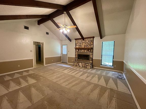 This 3 bedroom 2 bath home has over 1500 square feet, nice entryway, & a large living room with high ceilings. Living room has a wood burning fireplace with a brick hearth. Kitchen has plenty of cabinet/storage space and a breakfast bar. Dining area off the kitchen. Appliances include fridge, electric stove, dishwasher. Nicely landscaped with a large backyard and a two car garage. Closely located to Hwy 3132 with easy access to I-20 or I-49 for commuters. Non Smoking Property. Pets per owner approval with a non refundable $250.00 pet fee per pet.
