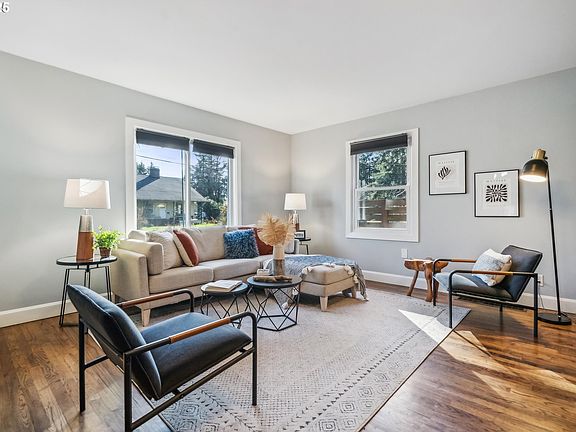This charming midcentury ranch sits on a rare 10,000 sq. ft. lot with gleaming hardwood floors leading into a bright and inviting living room. The updated kitchen features shiplap accents, modern oak cabinets, quartz countertops, and newer stainless steel appliances—perfect for any home chef. A fully-fenced yard with spacious deck and treliss, overlooks an oversized in-ground fire pit, creating the ideal setting for summer gatherings. With ample outdoor space, and a detached garage, there’s room to build an art studio, start an urban farm, or simply enjoy the privacy of this expansive lot. Tucked in a great location, this home is just minutes from the vibrant pubs, eateries, and shops of Woodstock. Call agent to show. Open house Sunday 2-4pm [Home Energy Score = 4. HES Report at https://rpt.greenbuildingregistry.com/hes/OR10205391]