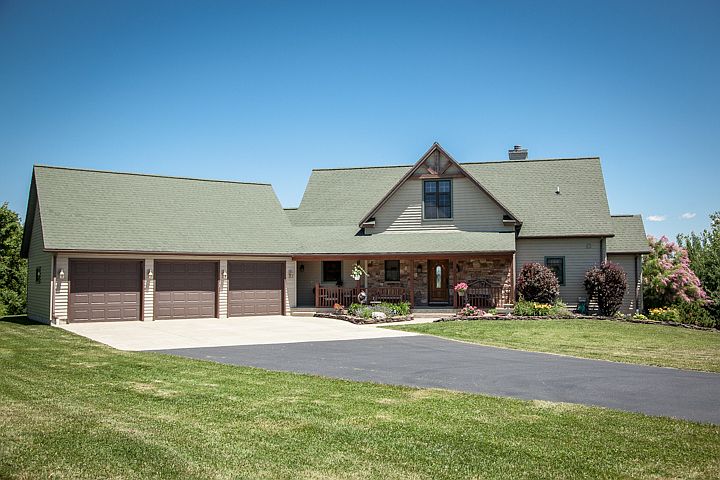 A stunning custom designed home with breathtaking views is a rare find! Imagine sitting on the deck sipping your favorite beverage in peace & tranquility. Inside offers a soaring 23' timber-peg frame boasting an open floor plan with natural woodwork bringing charm & character. Who could ask for more in a home that has a 3-car garage, hardwood floors, double oven, 1st floor master suite, ledge stone fireplace, wood-framed thermal Pella windows & more! Once visiting this house you'll experience the ease of flow and accommodation that will make this home your refuge.