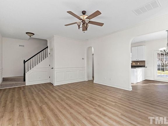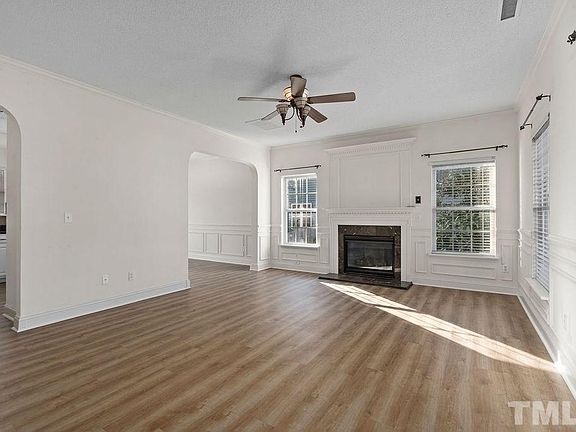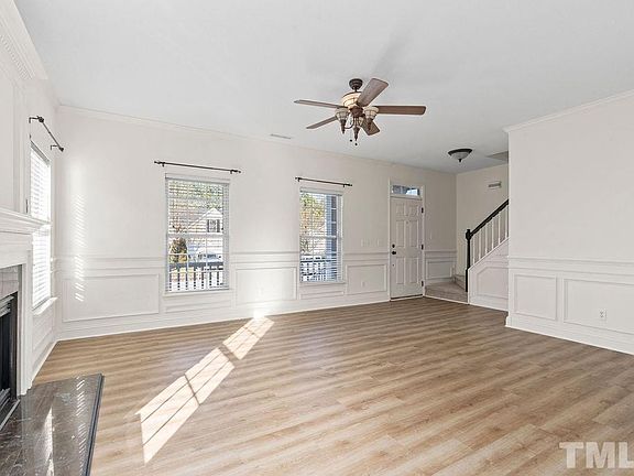 Bursting with Charm and move-in ready! Cozy living room w/fireplace and lots of light! Fresh paint throughout, new carpet, and new flooring. Kitchen has SS appliances, and freshly painted cabinets. Beautiful fenced in backyard, relaxing front porch, large deck for entertaining, and plenty of storage space. Located in a community with a pool, tennis courts. Access to RTP, 40, 147
