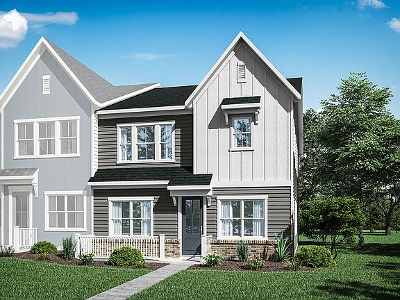 This elegant new townhome layout in Charlotte, NC, included in the brand new Planned Community Farmington, is the largest of our end unit designs at Trellis, with a reliable set of windows on the dining room side of every home. Plan 6 offers 4 exquisite exterior style options, a 2-car attached rear-load garage, and even the option to convert the office space to a 4th bedroom and 3rd full bathroom. As you enter the home, you are immediately greeted by a drop zone, the walk-in pantry to your right, and a spacious kitchen to your left. The kitchen can be upgraded to the gourmet kitchen, which features gas burners, upgraded cabinets, and shimmering stainless steel appliances ? all complimented by a stunning island with plenty of space for family gatherings. Adjacent to the kitchen is the office space, with a convenient powder room just outside the double doors. This space can be upgraded into a guest suite with a full bathroom, in order to cater to every lifestyle. Back into the kitchen, the dining room then flows seamlessly into the great room, which has an optional electric fireplace. Both spaces are surrounded by additional windows and natural light, which guide us up to the front of the home, where we find the lovely front courtyard. Upstairs, there are 3 bedrooms and a spacious loft, with optional windows. The primary suite expands across the front of the home, with upgrades available including an optional tray ceiling, an optional seat in the primary shower, and even an o