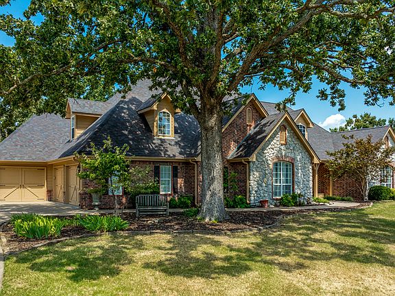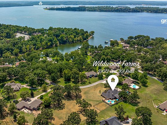 Discover tranquility in this charming ranch-style home nestled on 1.47 acres in the exclusive Wildwood Farms addition on Grand Lake. Your private backyard oasis features an inground pool, koi pond, natural rock waterfall, covered entertaining area with TV, bar seating, propane grill, hot tub, and a greenhouse. Inside, enjoy an open living space with a gas log fireplace, vaulted ceiling, and gourmet kitchen complete with granite countertops, eating bar, Frigidaire stainless appliances, and Wolf gas range. The primary suite offers a spa-like ensuite with a soaking tub, ceramic shower, dry sauna, and walk-in closet. With a split bedroom design, two additional bedrooms, a spacious office, 4th room with full bath above the garage, and a 3-bay garage with workshop, this home is a rare find! This stunning home offers an array of special features that elevate everyday living. Experience Alexa-controlled lighting, including illumination for your artwork, and elegant wood-look tile in the living room, office, and hallway. The bedrooms are cozy with plush carpet, while the gourmet kitchen boasts granite countertops, custom cabinetry with soft-close drawers, Frigidaire stainless appliances, a Wolf gas drop-in cooktop, a custom stainless-steel sink, a vent hood, a pot filler, and ceramic tile flooring. Plantation shutters add timeless charm throughout the home. The primary bath is a retreat, featuring an insulated dry sauna, a soaking tub, a ceramic shower, a double sink vanity, and a walk-in closet. Freshly painted inside and out, the home includes a 2-zone heat and air system with Lenox units. The 3rd bay shop is heated, and the hot water tank is powered by natural gas. Outdoor living is exceptional with a beautiful inground gunite pool, a Sta-Rite cartridge filter system, a hot tub with a new pump, and cool decking. Multiple covered entertaining areas include custom storage, counter space, a TV, and a grilling station with a bar. All set against the backdrop of a natural rock waterfall and a serene Koi pond. You will also enjoy year-round gardening provided by the greenhouse and raised garden beds. The roof was replaced in 2020.