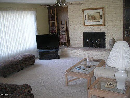 Check out the exceptional views on this golf course property, overlooking the 3rd green, 4th TBox and Red Mountain! This furnished block home features two good sized bedrooms and 2 baths. So much storage here you couldn't possibly use it all! Huge garage with golf cart entry, in addition to large covered carport. Sliding doors from both the dining room and living room to the back patio. Built-in china hutch in dining room. Fireplace in living room. Water softener. Breakfast bar in kitchen. New tile floors and fresh paint throughout. New counter tops in kitchen. Beautiful home located on a great lot. Show this beauty and sell it today! THIS ONE IS PRICED TO SELL! Don't miss out-- million dollar view here!!!
