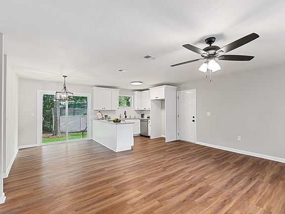 Beautifully renovated Fannie Mae HomePath Home. Updated with new roof & features LVP flooring in the main living areas & hallway, harmoniously blending with the refinished hardwood floors in the bedrooms. Newly designed open floor plan enhances the spacious feel, with the wall between the living room & kitchen removed to create an inviting atmosphere. Kitchen is a chef's delight, fully remodeled with modern shaker style cabinets, granite countertops, & stainless steel appliances, including a range with downdraft venting, microwave, & dishwasher. Matte black finishes throughout the home add a touch of sophistication & style. Newly insulated exterior walls for increased energy efficiency. Both bathrooms have been completely updated with subway tiled shower surrounds, tiled floors, new vanities, & contemporary fixtures, enhancing the home's modern appeal. Adding to the charm, sliding glass doors open to the patio, providing a perfect view of the pation & fenced backyard.