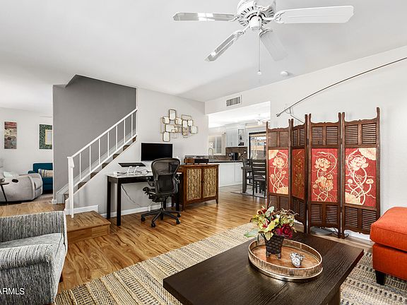 Discover urban living at its finest in this stylish four-bedroom townhome nestled in the heart of Scottsdale. With contemporary design and spacious interiors, this home offers the perfect blend of comfort and sophistication. The kitchen boasts granite countertops, stainless steel appliances, and ample cabinetry. Upstairs, the generous sized bedrooms provide ample space and natural light. Enjoy outdoor living on the private patio. Conveniently located near shopping, dining, and entertainment, this townhome offers the best Scottsdale living. Also a great option for investors, or a lock and leave second home. Endless possibilities!! Location is approved for short term rentals. Furniture available on a separate bill of sale.