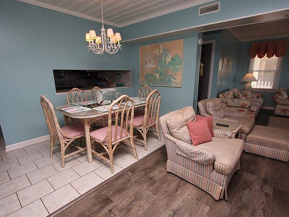 OCEANFRONT INVESTMENT- This oceanfront house is really a duplex, with separate residences up and down. 3BR/2BA up and 3BR/2BA down. Approximately 1250-1300 heated square feet on each level. Each level has an oceanfront sun room and a large oceanfront great room opening to a large dinning area. Oceanfront deck on upper level. Oceanfront patio on lower level. Upper has an oceanfront master bedroom. Downstairs unit was renovated in 2013. This very established rental sits on large 55' x 200' deep lot which goes to the high tide mark. Front lot area is paved to the street and allows parking for at least eight cars. Don't let this one get away!