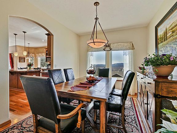 Imagine looking across from your deck at the expansive view that sits as a backdrop to south side Spokane. This custom-built home sits on top of Northwood, against a wooded border to the east. Features include: 984 sq ft oversized garage w/ "water station" for washing dogs/cars. Dog door leads to fenced, concrete dog run. Includes a reverse osmosis system. The kitchen has knotty alder cabinets, tiger-wood floors, gas range, w/ a gas fireplace, for all to gather for game time fun. Main floor also includes office w/ views to the deck. Life is easier w/ upstairs laundry for 3 bedrooms and full bath. Master has jetted tub, walk in shower, double sinks & walk in closet. Walkout basement w/ light coming in & provides large entertainment space & includes, a full bath & bed, wet bar, open family space & kids play-space under stairs. Basement opens onto patio where you can sit by the fire pit. There was no expense spared on landscaping w/ rock walkways, assorted grasses, flowers & trees. RV/boat/toy parking.