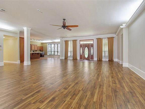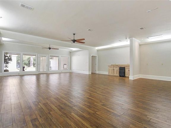 CUSTOM home. 4500 sf heated + attached garage, and a separate workshop. 3 large bedrooms, 2.5 baths. Open kitchen with granite counters/ mahogany cabinets. Very large master with 2 walk-in closets. Master bath w/ separate vanities and water closets. Custom office/library w/ black walnut built-in cabinets. Large laundry/ craft room. Lots of storage. Covered back porch with indoor/ outdoor fireplace to office. Full house generator, sprayed in closed-cell foam insulation. Completely fenced yard with remote controlled entrance gate. Security system. Not in a Flood Zone.
