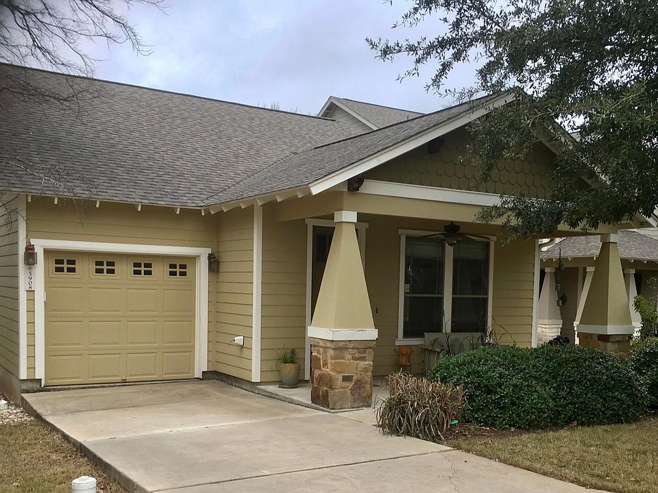 Craftsman style 3 bedroom 2 bath home in sought after Independence Park. This is on a very quiet dead end street. It is a 10 minute drive from downtown and the airport while also being centrally located to Central Market and retail shops. It is directly across the street from Garrison Park which has a great playscape, public pool and tennis courts. The house has an open floor plan with stained concrete floors throughout. The kitchen has high end cabinets and stainless steel appliances as well as granite countertops. There are three bedrooms one of which has French doors and would make an ideal office or nursery. The master suite has a walk-in closet. The master bath has a garden tub. There are ceiling fans in every room including the front porch. Other features include a one car garage and a sprinkler system in the front and side yard. The HOA takes care of mowing these areas. You can enjoy relaxing on the front porch or the elevated back deck which overlooks a green space that fills with wildflowers in the spring. Pets are considered on a case by case basis. No smoking allowed inside the house. Tenant must have house professionally cleaned prior to move out and submit receipt of this as proof that house was cleaned professionally