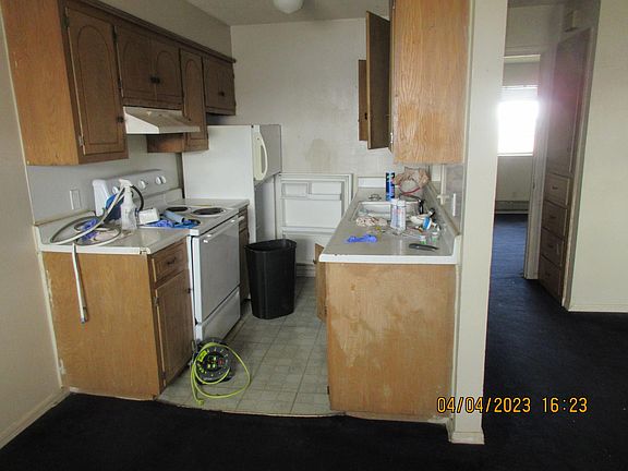 This unit is located on the second floor, south end of the building. It is all electric, with electric appliances and air conditioning. The living area and bed rooms are carpeted with the kitchen and bathrooms having vinyl floor tiles. The kitchen is equipped with electric stove and refrigerator, The kitchen sink is double bowl, with a garbage disposal unit included. There are many cabinet shelves and drawers , with more than adequate storage. The bath room has a bathtub with shower head included. The Bath room cabinet drawers and lower level storage. Heating unit is provided by through-the-wall heating/cooling AC unit. Electric baseboard heaters are installed to supplement heating requirements, when/if needed. The lease term is 12 month (1 year), with terms thereafter being month to month, until the unit is vacated, or a new agree executed for 1 months, Rent is responsible for their electric services . No pets are allowed outside of a separate pet agreement. Pit bulls and Rottweilers not allowed, for any reason. Sub letting not permitted. If a tenant Sublets, this will be a breach of the lease agreement and grounds for immediate eviction. Smokers will be responsible for maintaining proper smoking hygiene by not depositing burning cigarettes on the floor and countertops casing damage. They shall also be responsible for depositing smoke and other fumes on all surface areas discoloring them. Tenants understand that parking on the parking lot is not a right, but privilege and convenience The owner is not responsible if their vehicle damaged by a 3rd party. No derelict or non-operating vehicles will be allowed to remain on the property for more than 3 days, after which they will be towed at the owner's expense.