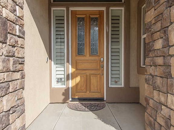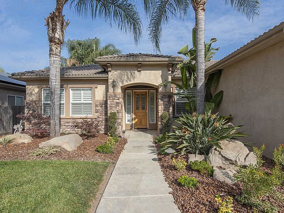 Lovely Amber Crossing home! Conveniently located near schools and shopping, this home has all the things you've been looking for. Beautiful open and split floor plan. 10 foot ceilings, and plantation shutters. Owned solar! Formal entry and great room with fireplace and custom built in. Great room is open to chef's kitchen with granite countertops, center island, and stainless steel appliances. Breakfast nook and formal dining area. Luxurious master suite and bathroom with makeup vanity, his and hers sinks, and tub. Spacious additional bedrooms. Custom landscape in the front and back with exotic palms. Sparkling pool is saltwater, heated and features a rock waterfall and jacuzzi. Laundry room with storage and utility sink. Serious pride of ownership - this house is so well maintained and ready to go. Call to arrange your private showing today!