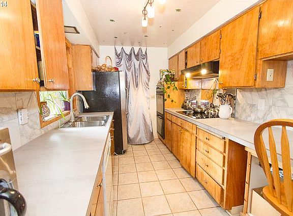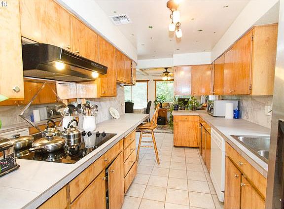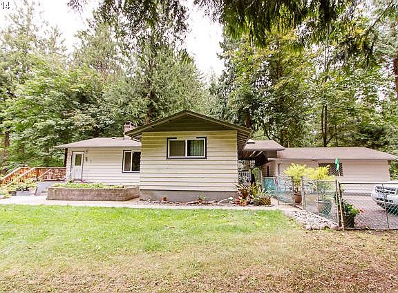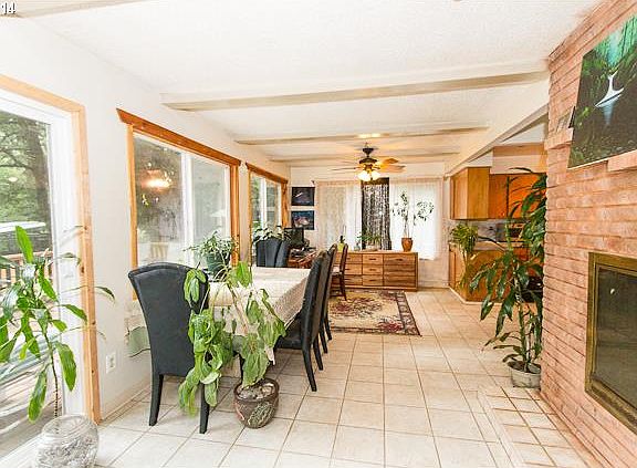 Dayranch set up w/2 living spaces.Ext entry both levels.Upstrs:2bd/2ba,tile counters in kit,tile flrs in kit & DR,pergo flrs,2 sided FP, slider to deck.Dwnstrs:1bd/1ba,(BR non conforming)kitchen,great rm,F/P.Storage room,patio.Big yard. 2car garage.Short walk & access to Sandy River.Lots of parking.Breezeway betw garage & house.Beautiful setting on quiet street.