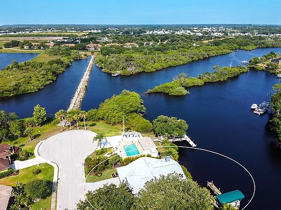 Gulf access and peacefully situated in a darling cul-de-sac in River Landings Bluff, admire a blissful riverfront lifestyle on Braden River and relish a wealth of limitless comforts in this spacious home. Washed in natural light, the delightful interiors grant an ethereal atmosphere for relaxing and entertaining complemented by an effortless floorplan. Meant for making memories, the spaces are ideal for gathering while enjoying the scenery beyond with plenty of access points to the screened lanai. The family room hosts a welcoming fireplace, perfect for ambiance and holidays, and the kitchen will entice the inspired cook to prepare feasts for every occasion. The master suite is an ample sanctuary boasting French doors and vaulted ceilings for a sense of presence and refinement. Granting the quintessential Florida Gulf Coast way of life, spend your free time perusing the river system out to the Gulf of Mexico from the luxury of your backyard with private dock and boat lift where your vessel is securely stored. New pilings in 2019. Several improvements have been handled for your convenience, including a newer HVAC, water heater and a new roof in 2017, seawall and home reinforcement. Community pool located right outside your door. All this in close proximity to shopping, dining, beautiful beaches and I-75, this wonderful home is everything you've wanted and more.