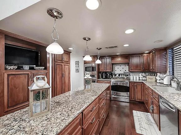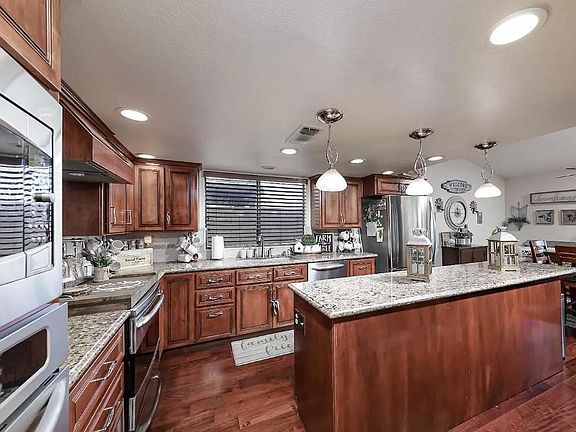 This North East Beauty has received lots of love and attention from it's previous owners. Nice open floor plan with wood flooring throughout most of the living area. The kitchen has upgraded cabinets and custom quartz counter tops and double ovens. Remodeled kitchen with island is sure to please pickiest of buyers. The pebble tec pool is ready for these hot summer months and HVAC, water heater, and dishwasher have been updated. This home offers block wall fencing on two sides of the backyard. Shutters in main living room and 2 inch blinds throughout.