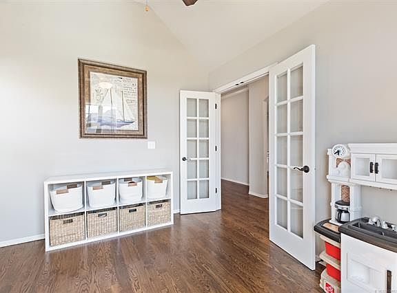 Amazing one-story plan! Lots of hardwood flooring including the master bedroom. Super master suite w/frameless shower, 2 large closets w/access to huge laundry. Mud bench, planning desk, pantry, beams. 3 bedrooms plus study. Large kitchen with Jay Rambo cabinetry throughout. Large open kitchen and living. Bixby Schools