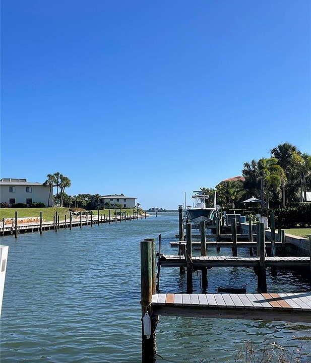 Waterfront and Location! The winning combination! This large and airy 4 bedroom, 3 bath home is located in the heart of Homes Beach, yet off the beaten path. The home with dock access is situated at the end of a canal with beautiful views to the intracoastal and bay. The kitchen has stainless steel appliances, solid wood cabinets and granite countertops, a breakfast bar and desk. The dining room/ family room combo have sliding glass doors that open out to the covered porch with 2 paddle fans. The master suite has a large walk-in California closet and a bath with garden tub and separate shower. Downstairs, there is a large 1 bedroom guest suite with a living room, open kitchen and bathroom with tub. It would be a wonderful space when the in-laws come to visit or a great party room! The oversized garage has space for 4 cars plus there is a large workshop. Across the street, there is a small playground, pickleball courts, and dog park. The library, shops and restaurants are a short walk away as are the sugar sand beaches and turquoise waters of the gulf. Location! Location!